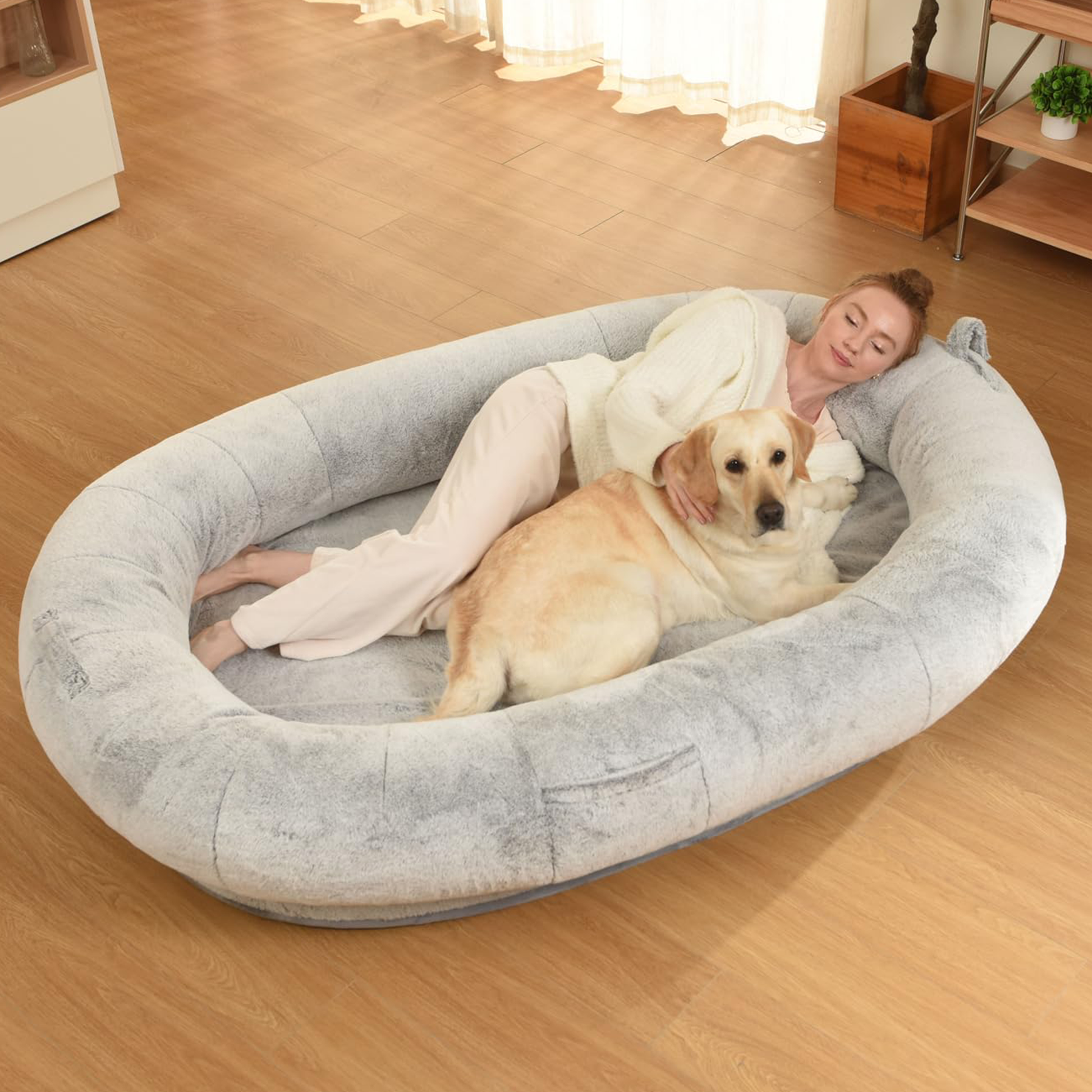【Adult Size and Rich Filler】This human dog bed is designed based on ordinary dog bed, brings you the luxurious way of experience with your pet. With giant large size has a over 74x50x12", wihch fits for most adult with their pets or kids. This beanbag bed not just deisgn for relaxation, but a ideal choice for shared moments with your family and pets.